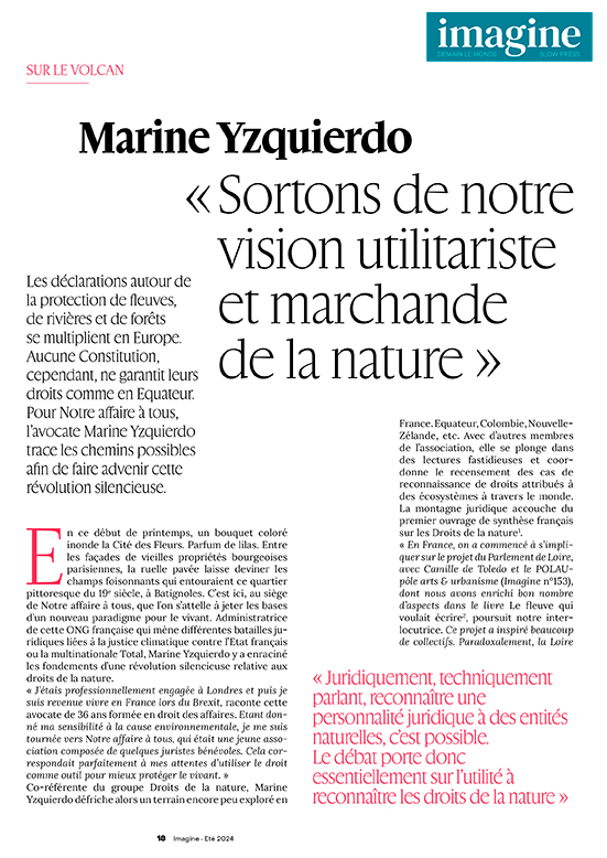 Les déclarations autour de la protection de fleuves, de rivières et de forêts se multiplient en Europe. Aucune Constitution, cependant, ne garantit leurs droits comme en Equateur. Pour Notre affaire à tous, l’avocate Marine Yzquierdo trace les chemins possibles afin de faire advenir cette révolution silencieuse. […] Lire l’article